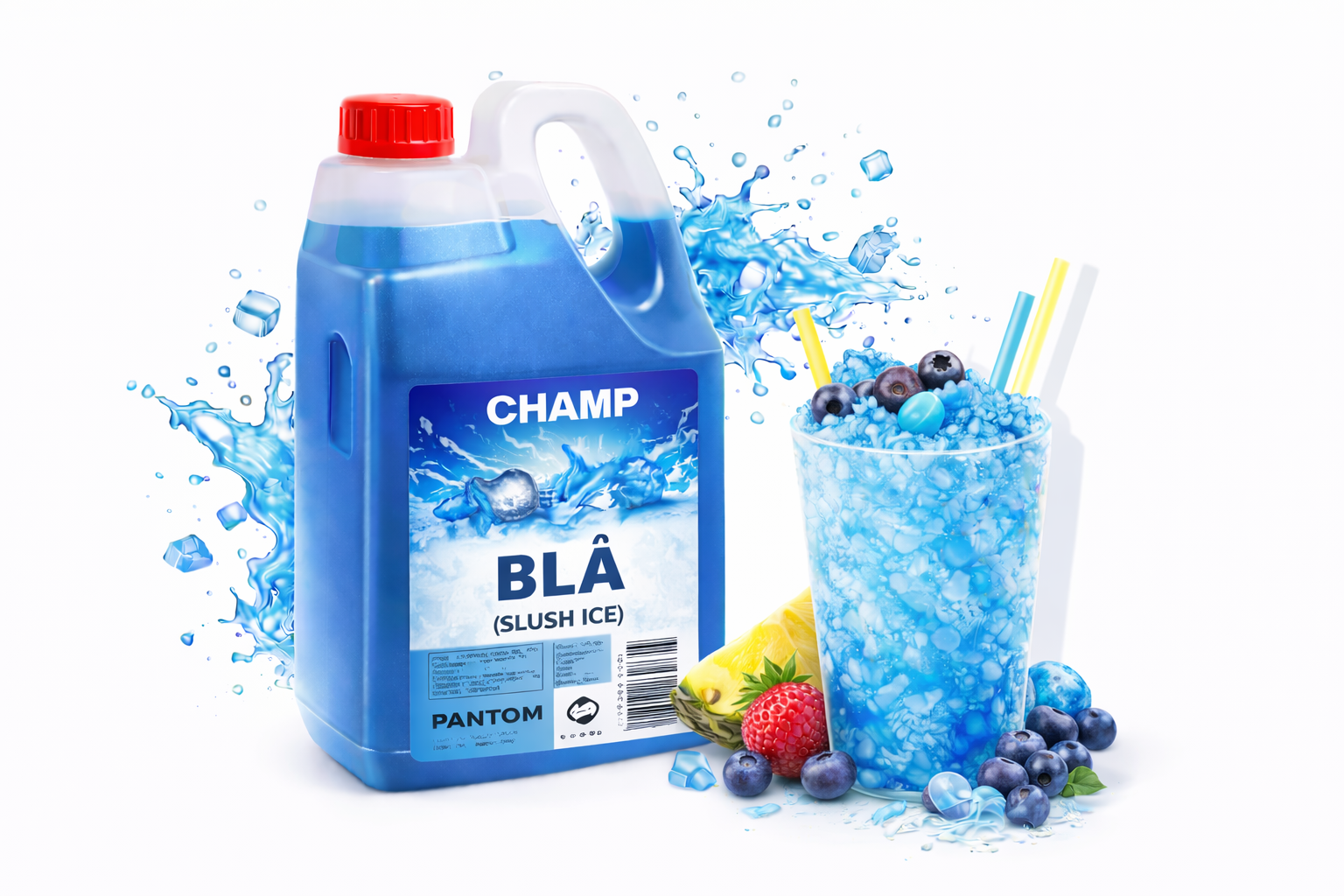 Med Champ Blue kan du nemt og hurtigt lave læskedrikke og slushice derhjemme. Dette koncentrat er specielt designet til at blive fortyndet med vand og kørt i en slushice-maskine for at skabe den perfekte konsistens og smag.